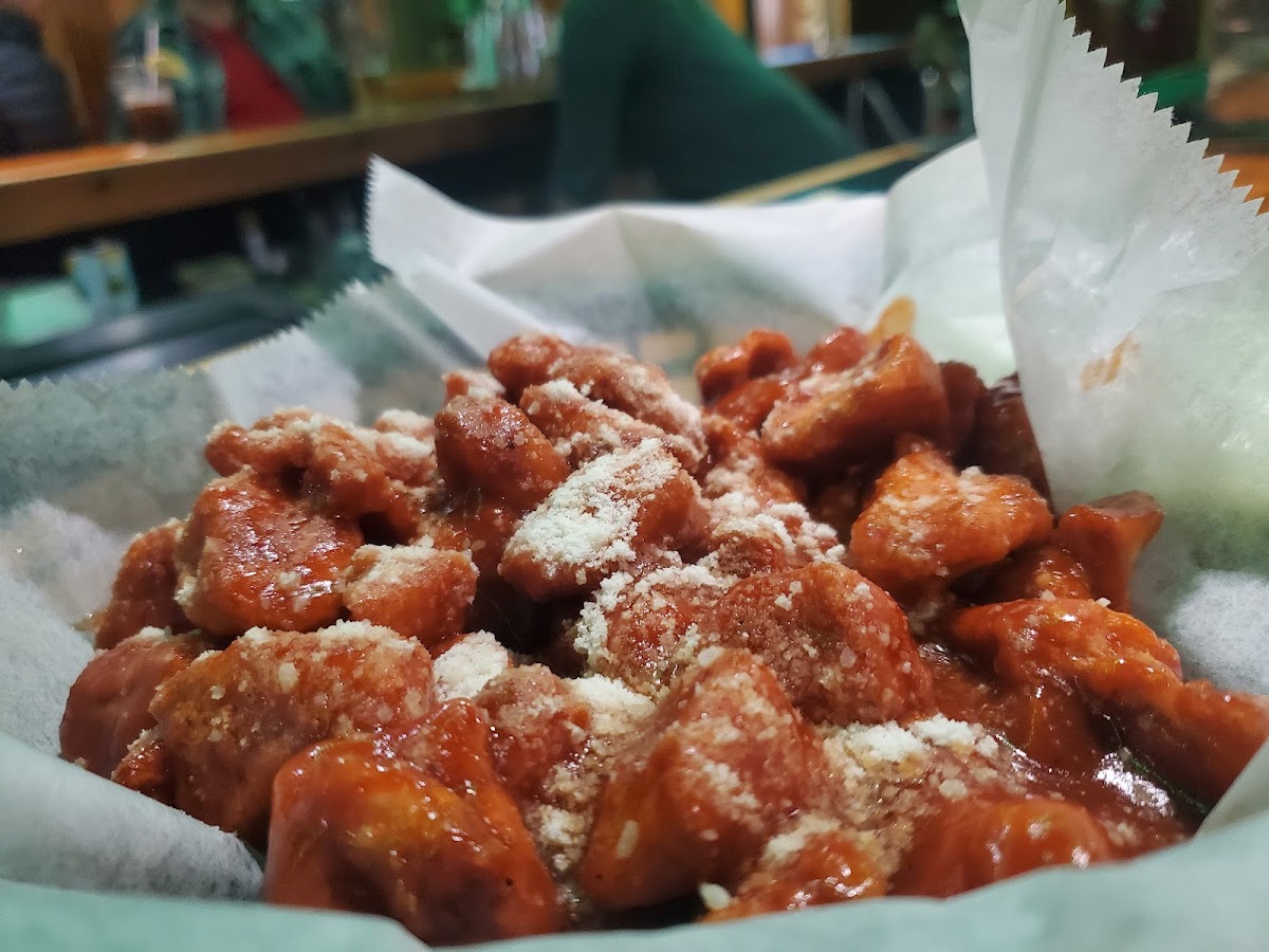 Small bar and restaurant with a pool table. We ordered fresh cut fries with cheese and bacon (real bacon, not real cheese) and wings. I ordered the house special sauce, a mix of wing sauce, bbq and parm cheese. It was not the best. The bites were good otherwise. Not too bad price-wise.